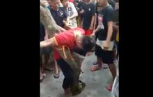 Seorang maling motor jadi bulan-bulanna massa usai aksinya tertangkap basah, ia diikat dipohon sebelum diamankan polisi.
