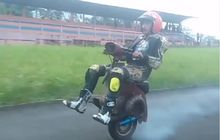 Eduun..Geber Vespa Setengah Bodi Hanya Satu Ban, Kaki Ngangkang Libas Lintasan