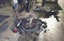 Anggota TNI Tewas, Adu Banteng Sesama Motor, Honda Mega Pro Hangus Terbakar