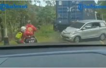 Ngeri! Video, Truk Tronton Gagal Nanjak Tubrukin 4 Mobil, Pemotor Dibikin Melongo Doang