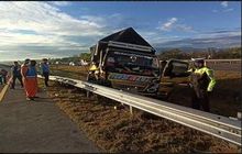 Truk Kecepatan 80 KM Oleng Keluar Jalur dan Tabrak Pembatas, Begini Kronologinya