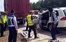 Terjadi kecelakaan, MItsubishi Pajero Sport menabrak bagian belakang truk hingga mengakibatkan satu penumpang meninggal dan lima luka-luka.
