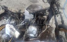 Sebuah Honda Tiger Revo hangus hingga hanya tersisa rangka dan mesin usai menabrak keras sebuah truk. Kronologinya bikin merinding.