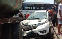 Sebuah bus menyeruduk Honda BR-V dan truk tangki , hingga menyebabkan salah satu penumpang Honda BR-V meninggal dunia di tempat kejadian