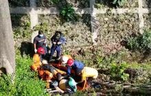 Seorang pengendara Yamaha NMX mengalami kecelakaan tunggal menabrak trotoar dan nyemplung ke dalam parit sedlam 4 meter.