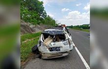 Sebuah Toyota Harrier mengalami kecelakaan tunggal hingga ringsek tak berbentuk terjadi di Jalan Tol Cipali.