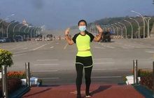 Seorang perempuan bernama Khing Hnin Wai terlihat asyik melakukan Aeobik saat kudeta Myanmar belangsung.