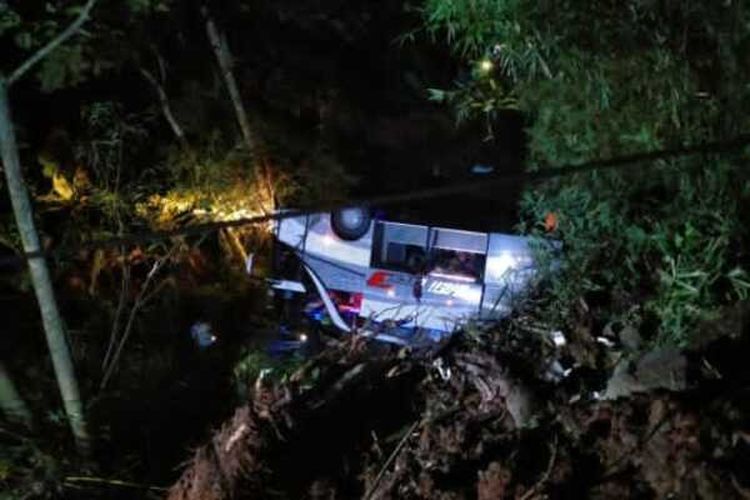 Sebuah bus pariwisata yang membawa rombongan ziaran dan tur siswa siswa SMP mengalami kecelkan masuk ke dalam jurang.