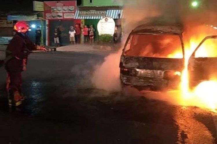 Sebuah mobil yakni Daihatsu Zebra hangus terbakar, tiga mobil pemadam dikerahkan, Pemilik dicari-cari enggak Ketemu.