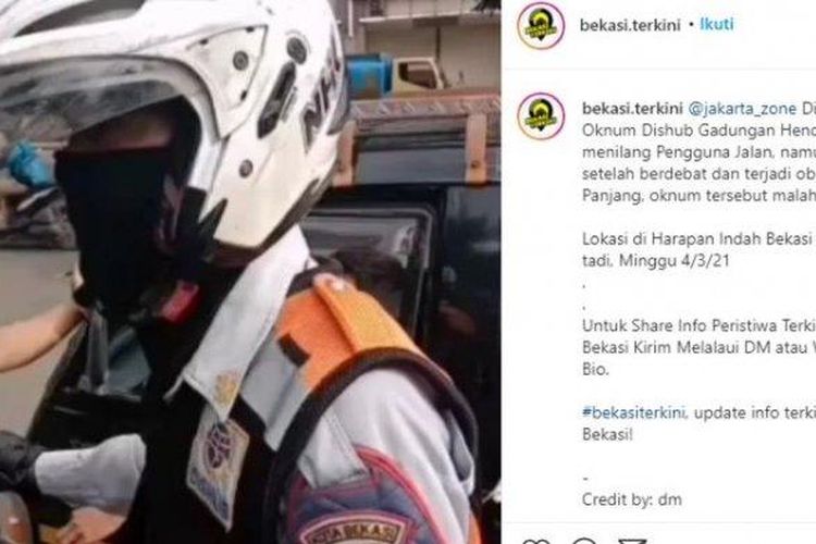 Seorang pria berseragam Dishub Bekasi hendak menilang mobil pikap viral di media sosial, dipastikan adalah personel gadungan.