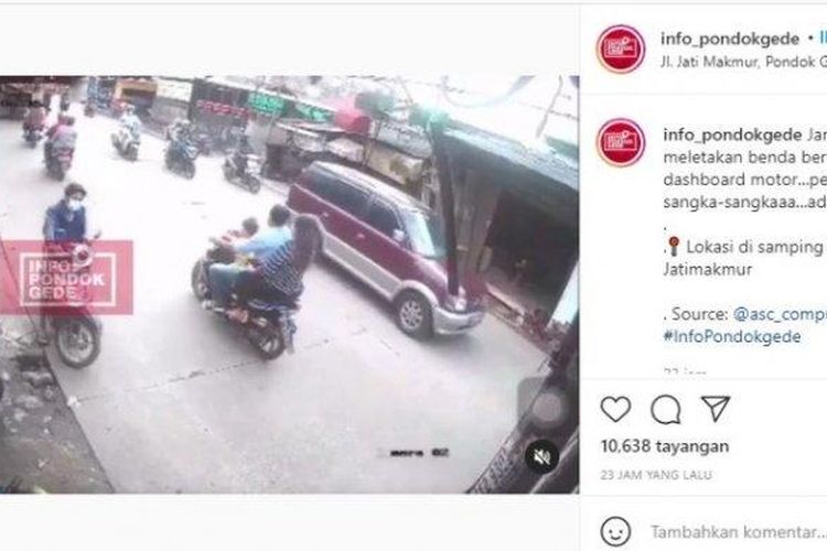 sebuah video viral memperlihatkan aksi pencurian ponsel di dasbord motor yang dilakukan seorang pria berboncengan motor dengan anak dan istrinya.