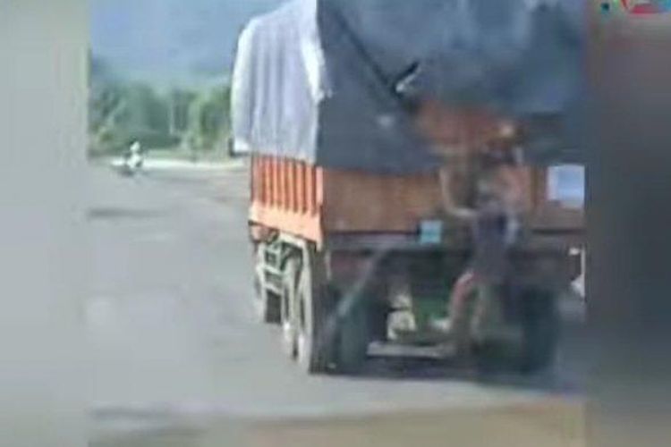 Video viral, memerlihatkan seorang remaja yang gelantungan truk itu bukanlah bajing loncat, ini faktanya