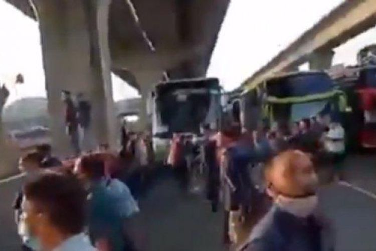 Viral di media sosial, sebuah video memperlihatkan sejumlah pekerja berteriak di jalan tol, karena kesulitan akses menuju tempat bekerjanya.