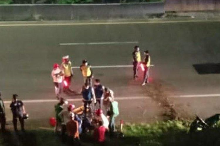 Melaju kencang di jalan layang, pria dan wanita boncengan motor terjun ke Tol, begini penuturan saksi