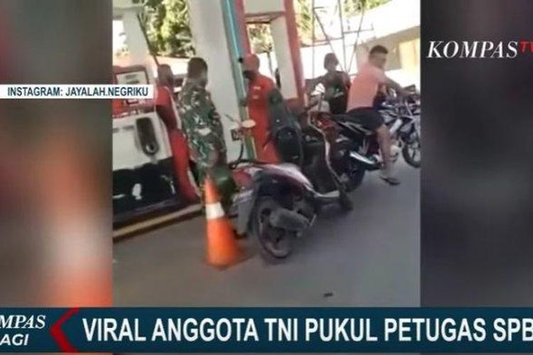 Sebuah video memperlihatkan seorang oknum anggota TNI yang memukul petugas SPBU viral di media sosial.