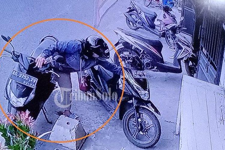 Sebuah video viral dimedia sosial memperlihatkan aksi pencurian hnadphone dari bagasi motor yang terekam oleh CCTV.