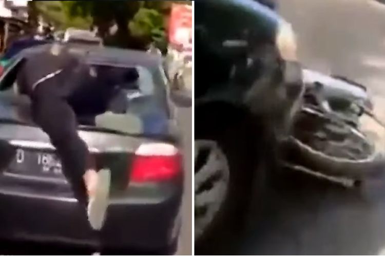 Sebuah video viral dimedia sosial memperlihatkan aksi warga, pengendara motor memburu Toyota Vios yang menabrak dan menyeret motor.