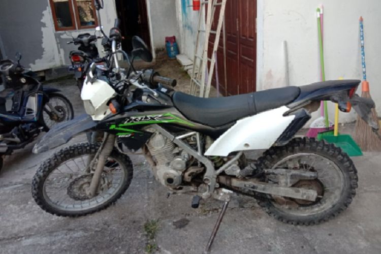 Dilelang, satu unit motor jenis Trail yakni Kawasaki KLX 150 tahun 2017 warna hitam kombinasi hijau.