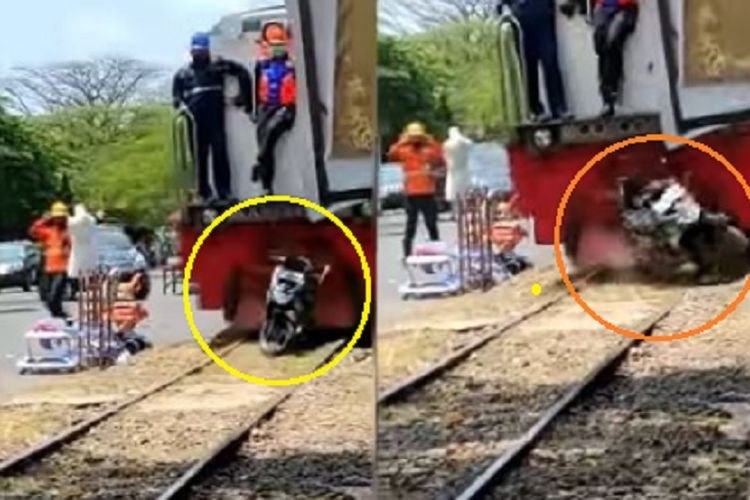 Detik-detik Honda BeAT Mental dan Ringsek Digilas Kereta Api, Gara-gara Parkir Sembarangan, Siapa Yang Salah?