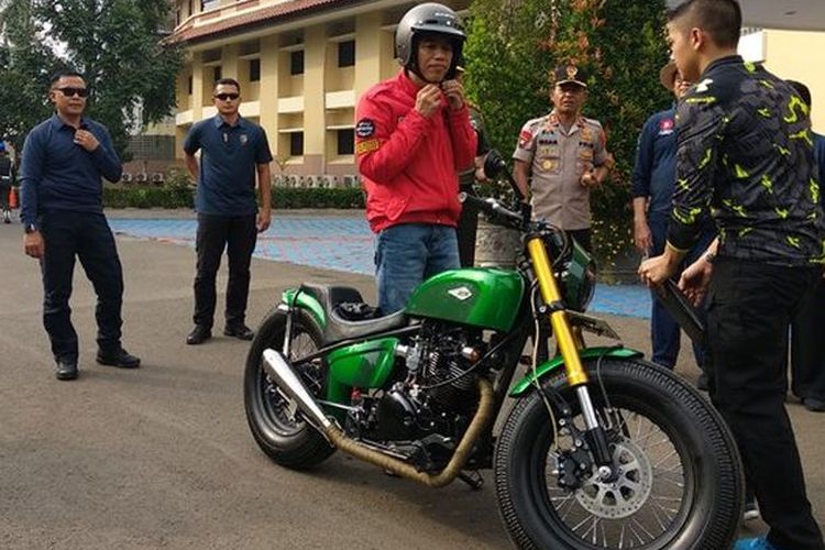 beredar foto motor kustom Jokowi bertampang Neo Cafe Racer turun dari pesawat TNI, kabarnya mau digeber di Sirkuit Mandalika