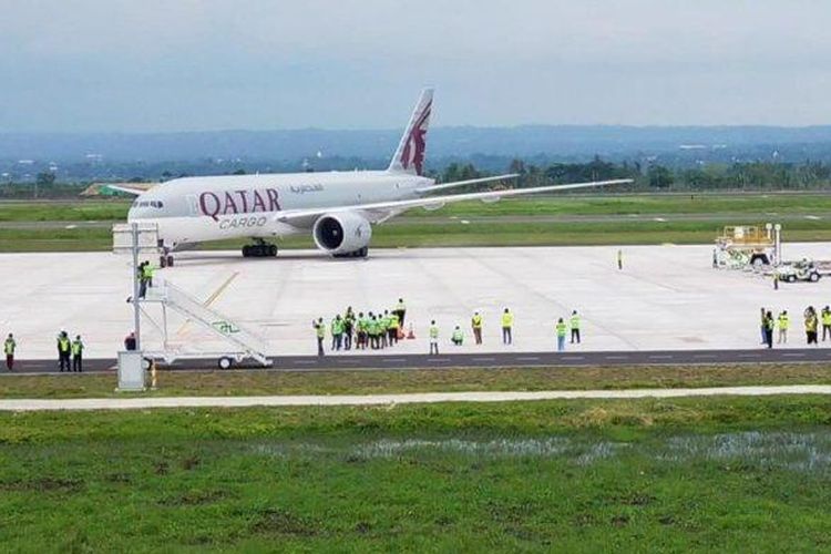 Dua pesawat kargo Boeing 777 Freighter Qatar Airways mendarat di Bandara Internasional Lombok yang membawa logistik WSBK, isi kargonya bikin penasaran