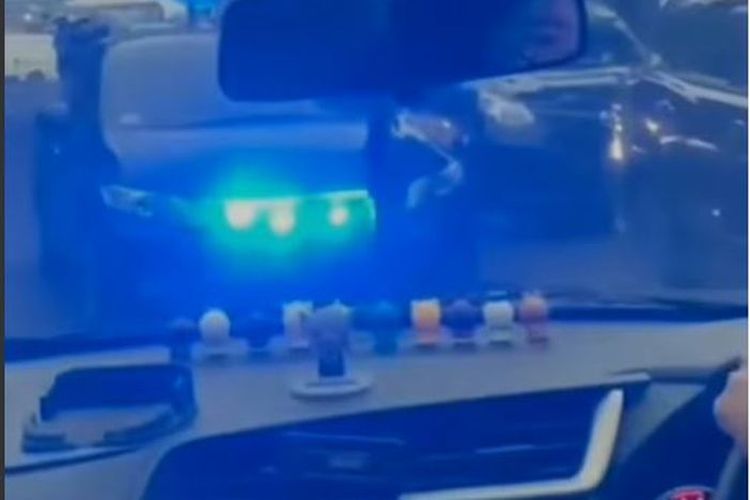 Satu unit Honda Civic berlampu strobo nekat melawan arus di jalanan yang sedang macet, dihadang oleh seorang pengemudi perempuan, ini videonya