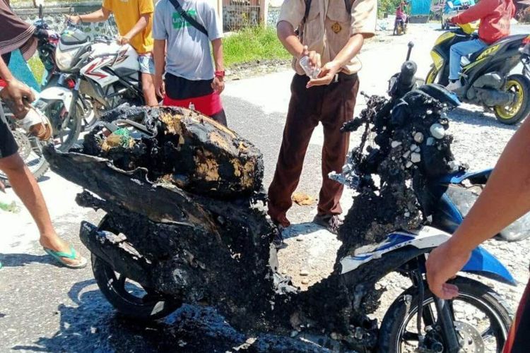 Dua remaja pingsan mengetahui motor yang digunakannya terbakar, bermula dari munculnya asap dari bagian mesinnya.