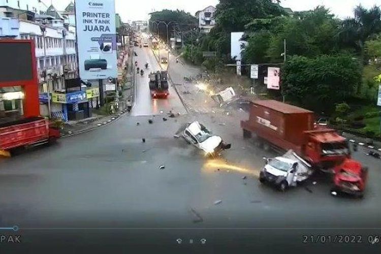 Kecelakaan maut terjadi, sebuah truk menabrak belasan kendaraan di Balikpapan diduga karena rem blong, ,berikut kronologi kejadiannya.