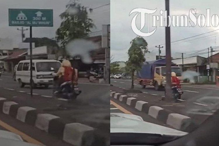 Bikin Jantungan, Gadis ABG di Klaten Naik Motor Lawan Arus Musuhnya Truk dan Bus, Videonya Viral