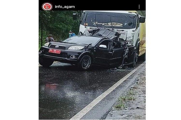 Kecelakaan lalu lintas melibatkan satu unit Toyota Rush mobil dinas dan truk terjadi di Kabupaten Agam, istri Camat meninggal dunia