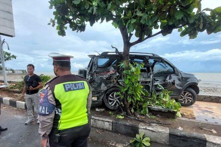 Satu unit Toyota Rush mengalami kecelakaan dihantam truk dari belakang, hingga naik ke ke atas trotoar nyaris terjun kelaut, begini kronologinya