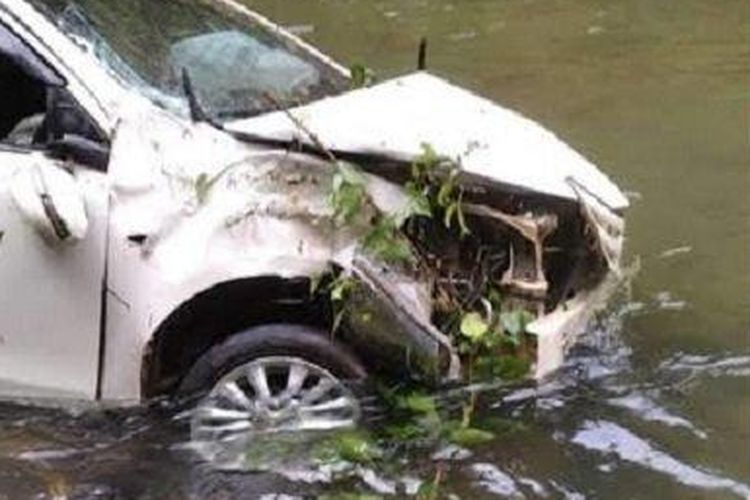 Satu unit Toyota Etios Valco berisi lima penumpang nyemplung ke sungai di Kabupaten Jepara, begini kejadiannya menurut penuturan petinggi desa.