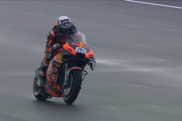 Rider tim Red Bull KTM, Miguel Oliveira sukses menaklukkan trek basah sirkuit Mandalika dan keluar sebagai juara MotoGP Indonesia 2022, simak hasilnya