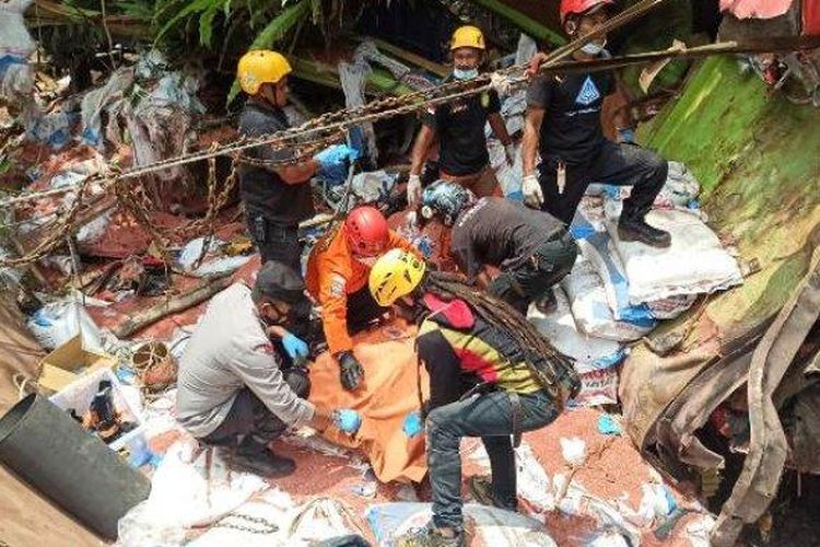Sebuah truk tronton mengalami kecelakaan masuk ke jurang karena diduga rem tidak berfungsi, dua orang meninggal dunia.