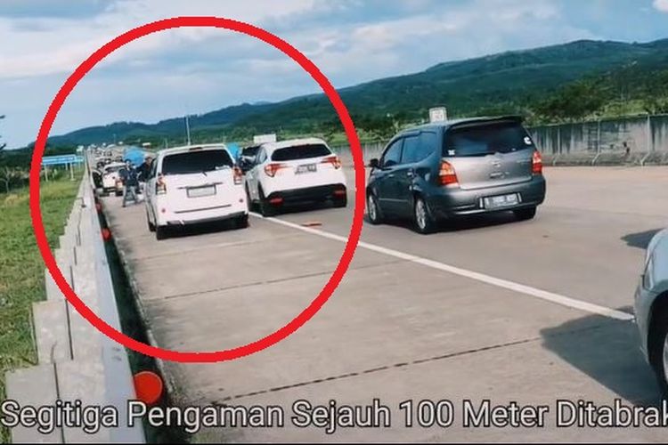 Melaju di Bahu Jalan Tol, Honda HR-V Hampir Nabrak Mobil Ganti Ban, Segitiga Pengaman Diterobos
