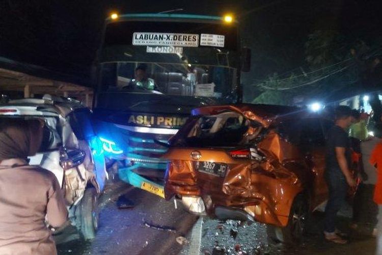 Satu unit bus hilang kendali hingga menabrak enam kendaraan di depannya di Jalan Raya Serang-Pandeglang, Senin (9/5/2022) malam, begini kronologinya.