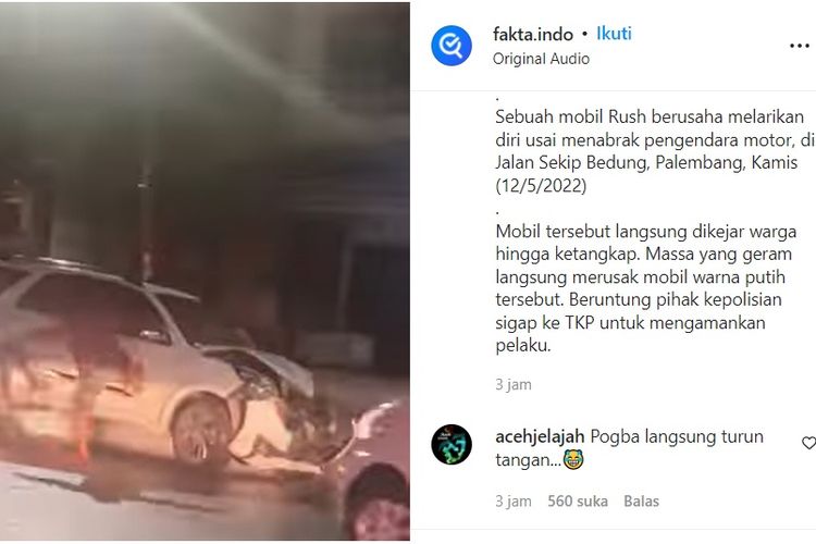 Satu unit Toyota Rush warna putih diamuk warga karena berusalah kabur setelah menabrak motor di Palembang, berikut kejadiannya.