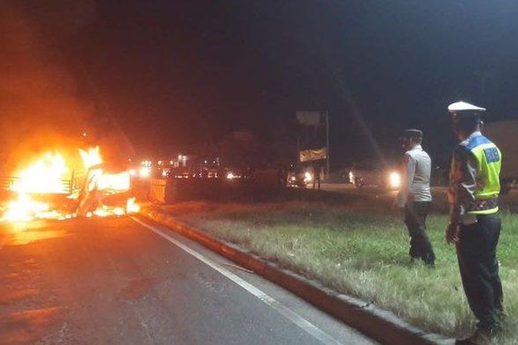 Sebuah mobil jenis pikap berpenumpang suporter bola TIimnas Indonesia mengalami kecelakaan terbakar, empat orang meninggal dunia.