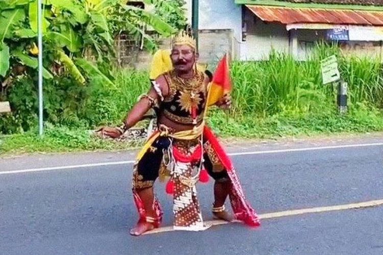 Viral video seorang pria berkostum Gatotkaca membatu warga menyeberang jalan di Yogyakarta, berapa ya pendapatannya?