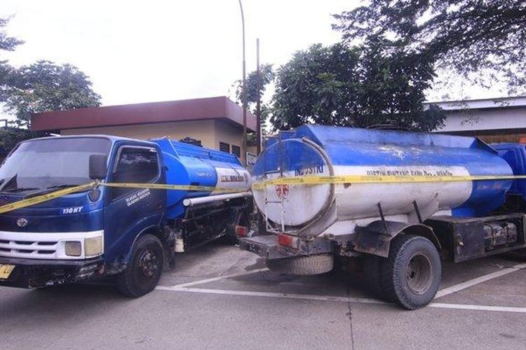 Sebanyak dua unit truk tangki diamankan oleh petugas Polresta Samarinda dari dua gudang penampungan ,