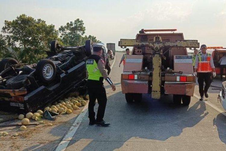 Terjadi peristiwa kecelakan lalu lintas melibatkan dua mobil, yakni Toyota Hiace menabrak mobil pikap muatan buah melon. Begini kronologinya.