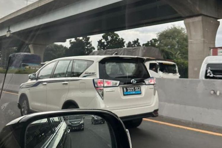 Toyota Kijang Innova Electric Vehicle (EV) tertangkap kamera di jalan tol tanpa mengunkan kamuflase penutup.