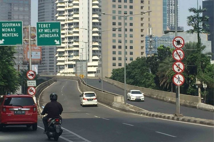 Pengendara motor yang nekat lewat jalan layang non tol (JLNT) Casablanca, Jakarta Selatan bisa ditilang manual.