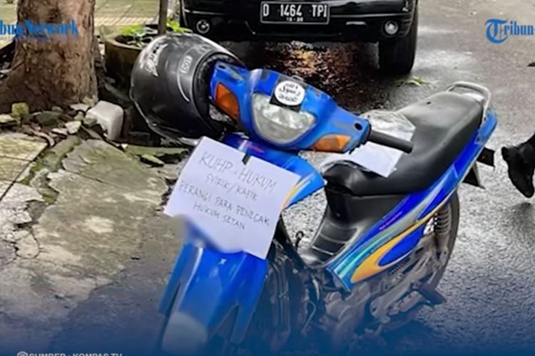 Suzuki Shogun yang diduga milik pelaku bom bunuh diri Polsek Astana Anyar Bandung tertulis pesan terselubung, diduga jadi motif pelaku.