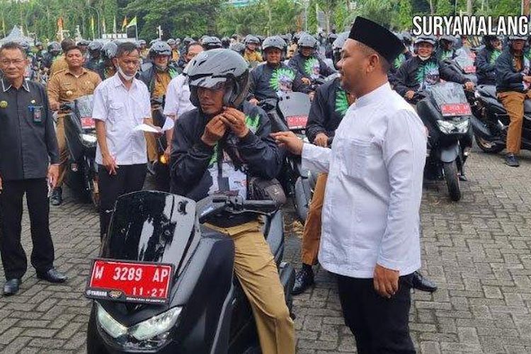 Sebanyak ratusan Yamaha NMAx diserahkan oleh Bupati Gresik Fandi Akhmad Yani, kepada kepala desa dan lurah sebagai motor dinas baru.