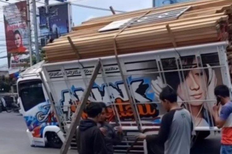 Truk Muatan Mendadak Posisinya Miring Nyaris Terguling, Penyebab Bukan Apa-apa Selain Hal Ini