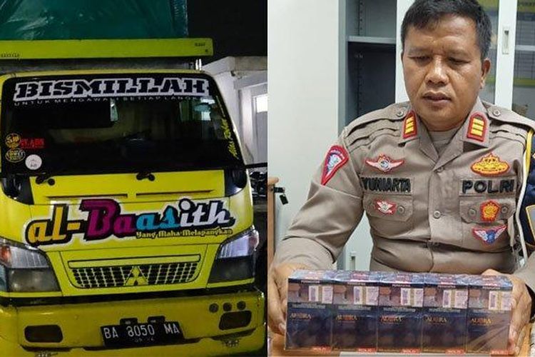 Sebuah truk Colt Diesel bermuatan jutaan batang rokok diamankan oleh petugas polisi di jalan tol Lampung Selatan.