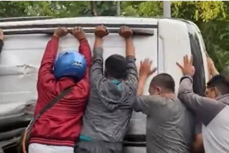 Toyota Fortuner Bentur Pembatas Jalan Dan Terguling, Gara-gara Benda Jatuh