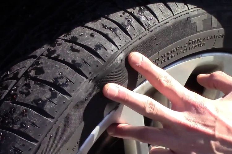 Ban mobil bisa megalami benjol, selain karena benturan, penyebab lainnya bisa terjadi karena tekanan angin yng kurang.