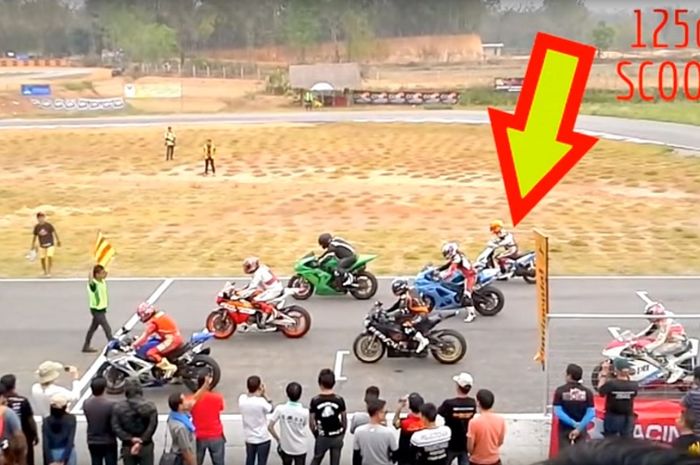 Otomania.com - Sebuah ajang balap umumnya melombakan kendaraan berjenis sama, misalnya antar motor berkapasitas 1.000 cc, atau satu kelas. Tapi, apa jadinya jika motor yang berbeda jenis berlomba, misalnya skutik melawan moge?
